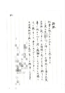 この度は○○の件につき、お骨折りを頂き大変お世話に成りました。 お陰様で思ってたより早く終了した事に改めて心より深く感謝申し上げますと同様に、ほっと致しました。 本当にありがとうございました。...
